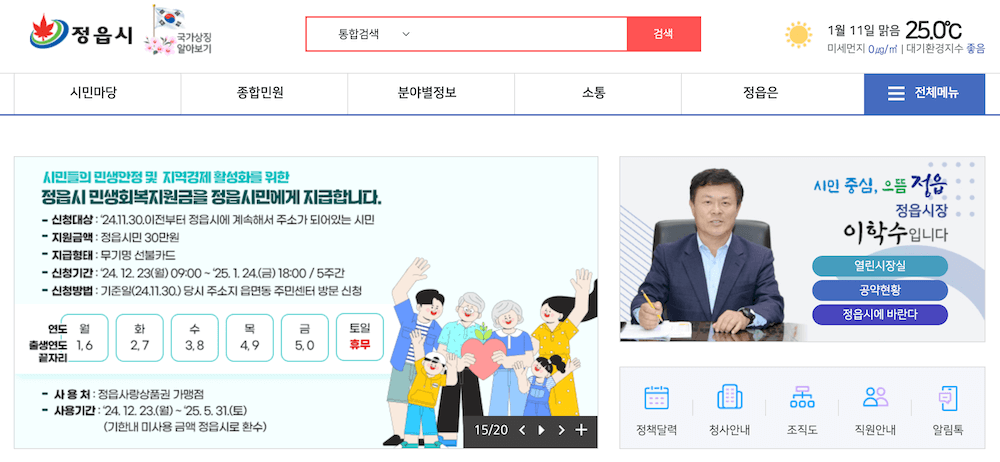 - 대상자: 2024년 11월 30일 기준으로 정읍시에 주민등록이 되어 있는 모든 시민
