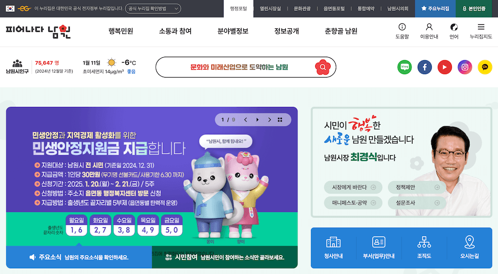 이번 민생안정지원금은 단순한 금전적 지원을 넘어 시민들에게 경제적 위로와 희망을 전하는 데 중점을 둔 정책입니다. 최경식 남원시장은 "이번 지원금이 지역 경제를 활성화하고 시민들의 삶을 안정시키는 데 기여할 것"이라고 밝혔습니다.