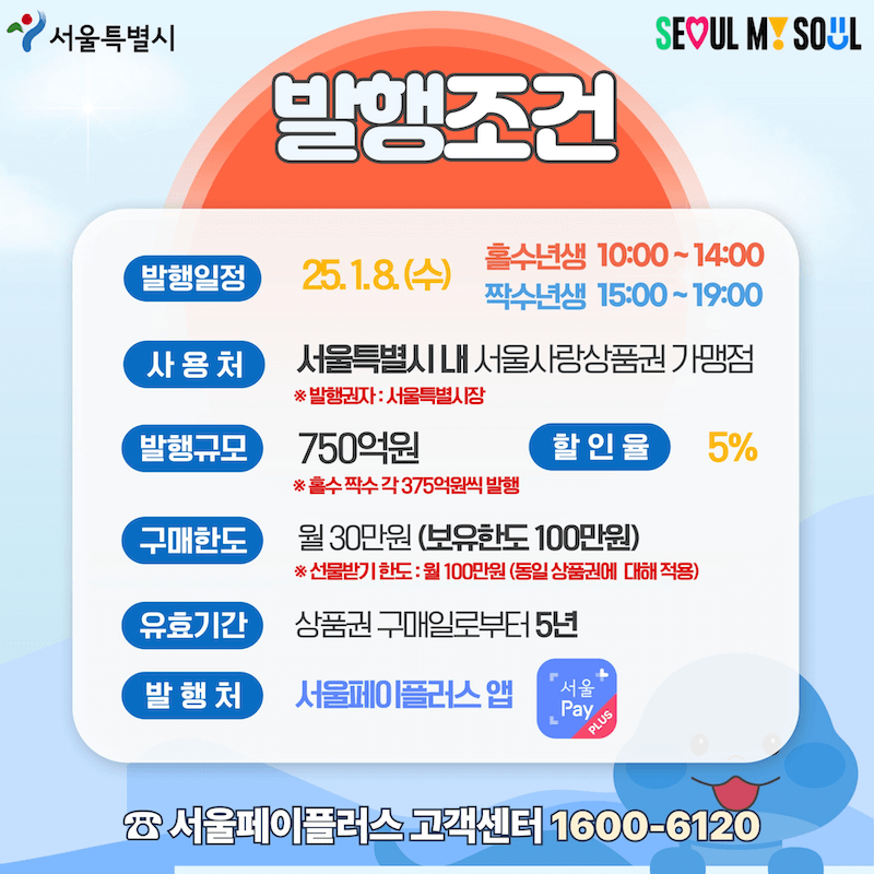 (신용카드 구매는 불가) - 발행일에는 서울페이플러스 앱의 일부 기능이 일시 중단될 수 있습니다.