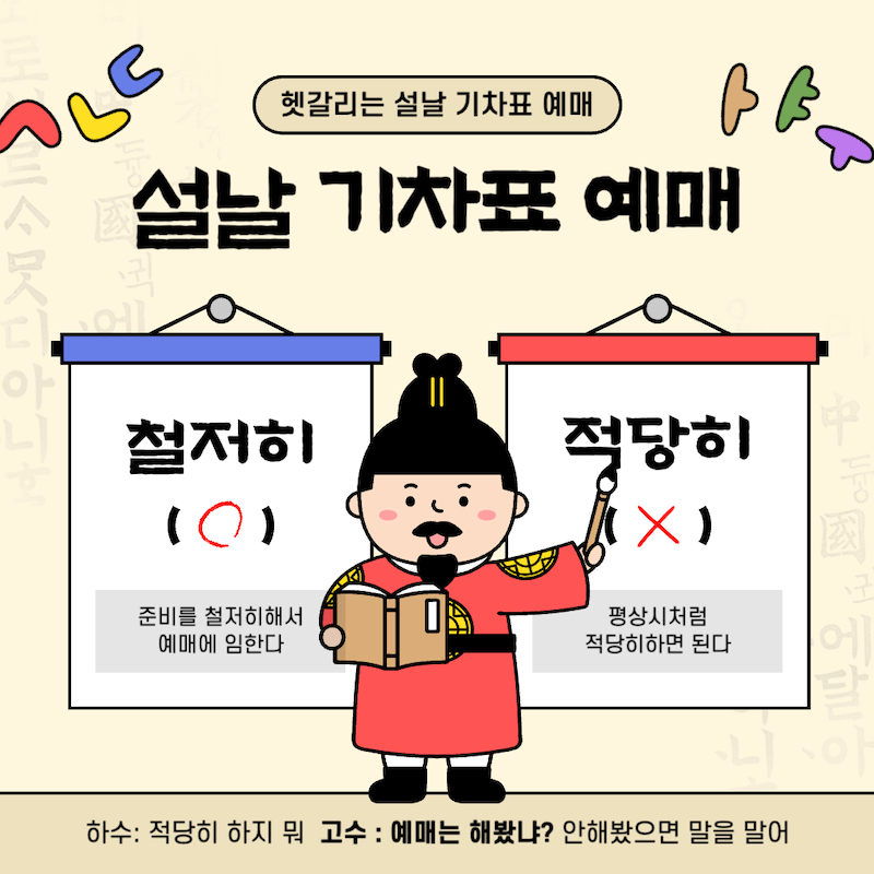 매년 설날 기차표 예매는 마치 전국민이 참여하는 수강신청과 같습니다. 치열한 경쟁 속에서 원하는 강의 수강을 실패하면 학점을 위해 '고전문학의 이해'를 들으며 문학학도가 되어야 하는것처럼 낭패를 보게 됩니다. 내가 원하는 일시에 필요한 표를 손에 넣기 위해서는 정말 철저한 사전 준비가 필요합니다. 아래에 설날 기차표 예매 성공을 위한 모든 팁을 정리해 보았습니다. 부디 꼭 성공하세욧!