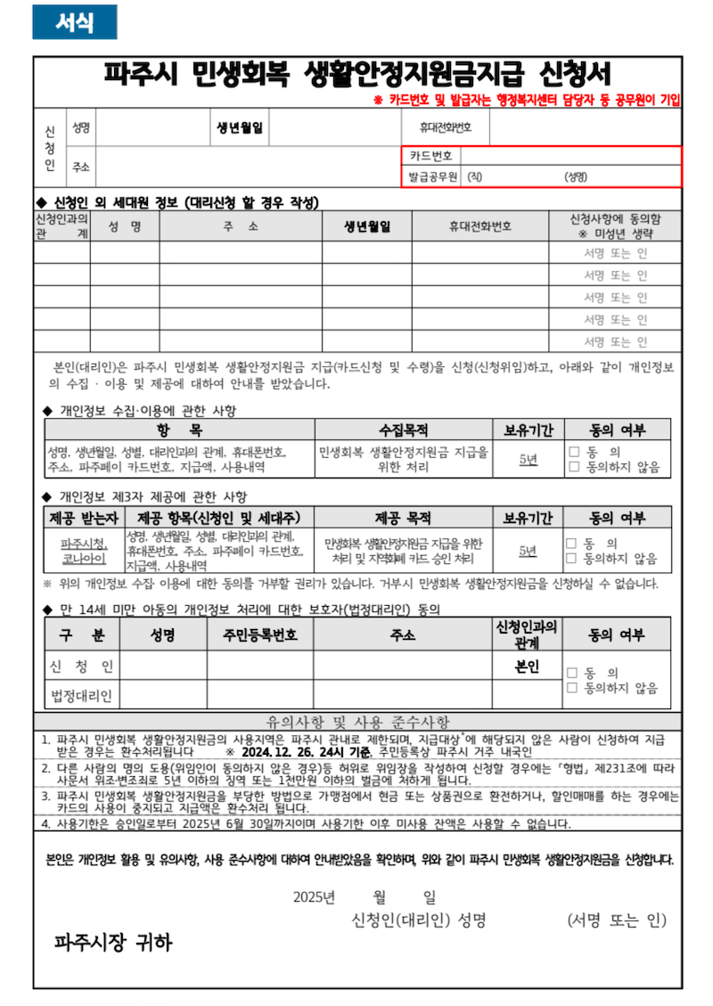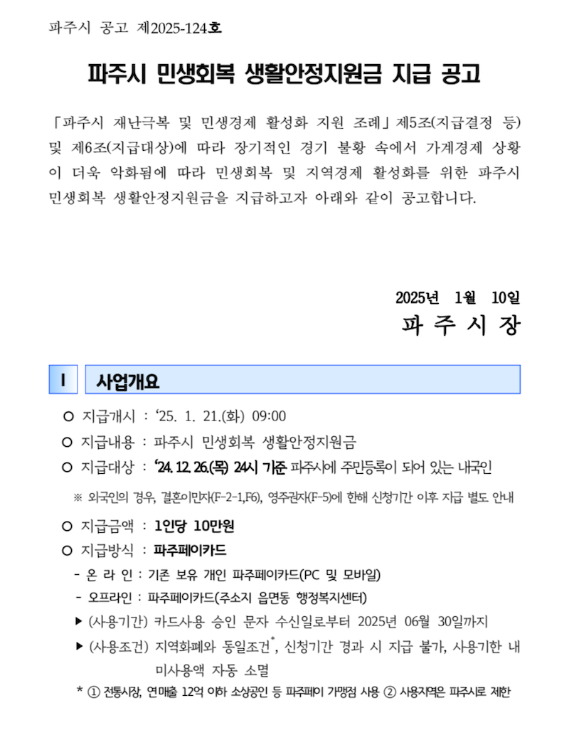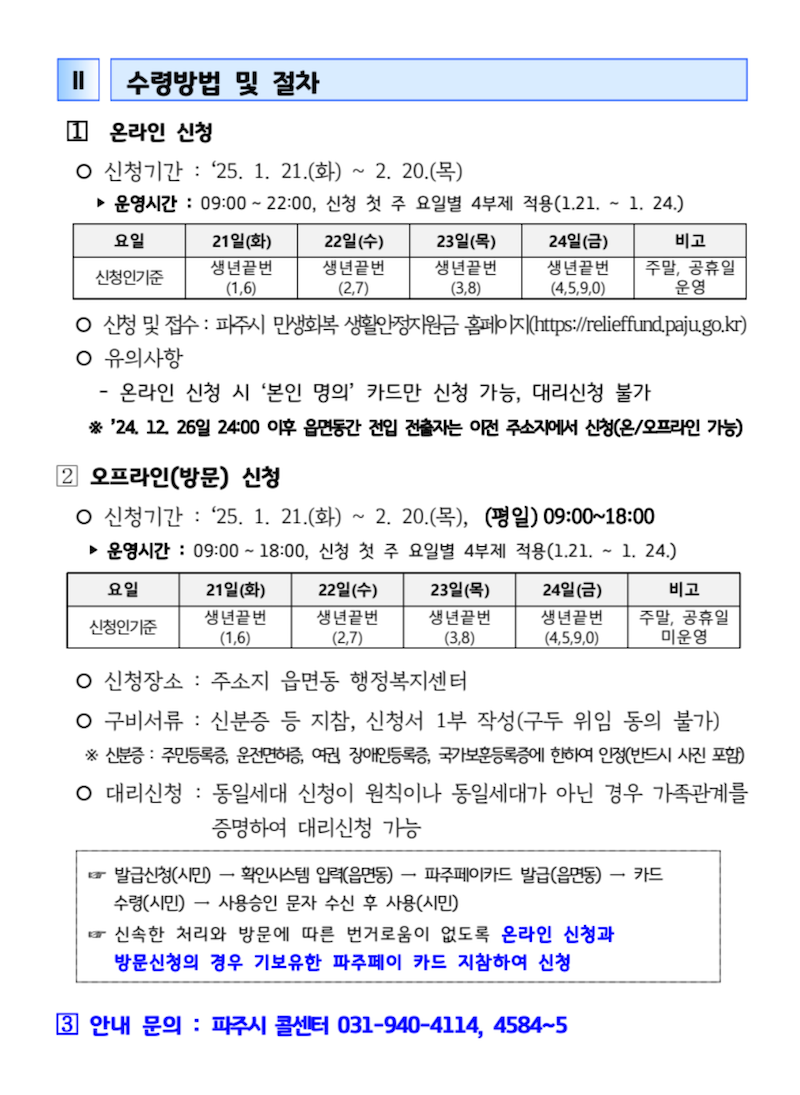 - 파주시청 민생회복지원금 담당 부서: ☎ 대표 전화번호